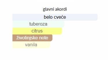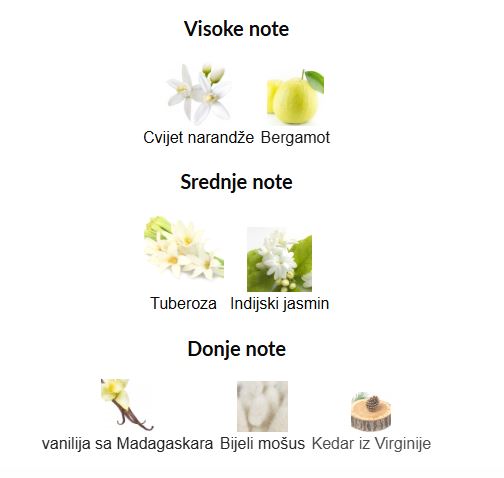• Donje note: Vanilija sa Madagaskara, Bijeli mošus, Kedar iz Virginije