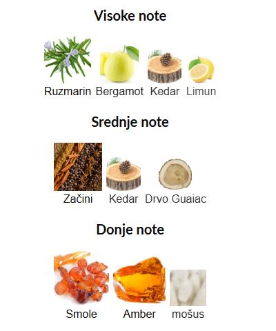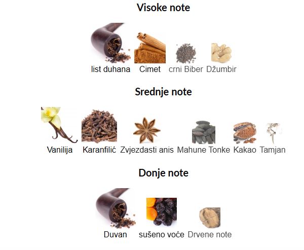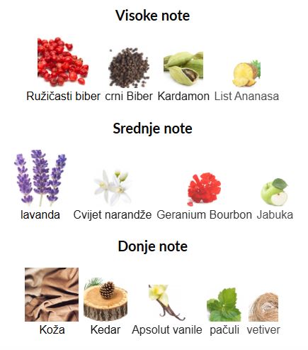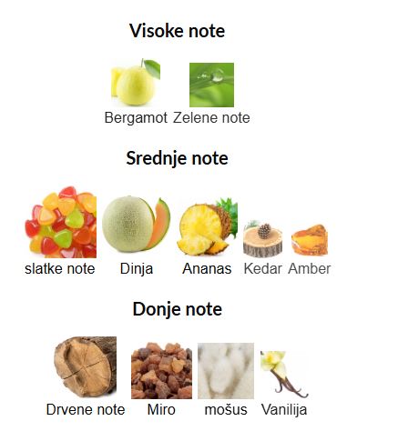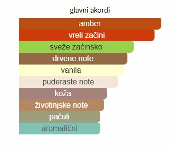 - Donje note: Vanilija, Mošus, Sandalovo drvo