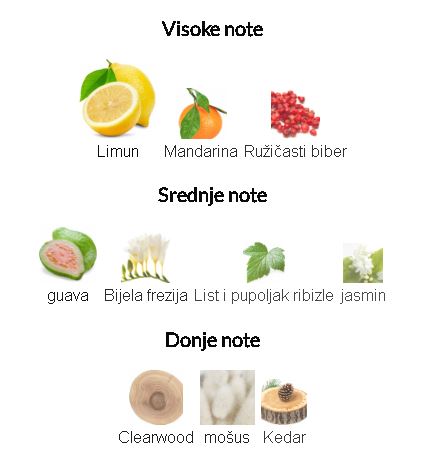 • Gornje note: Limun, mandarina i ružičasti biber. Ove note unose osvežavajući i blistav početak.