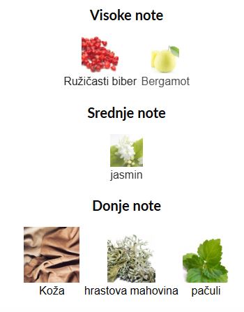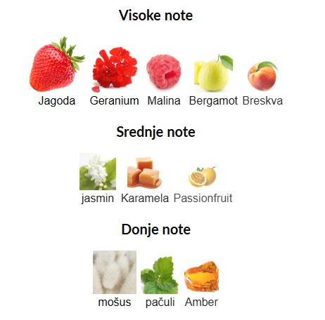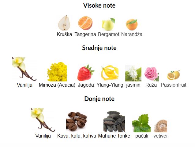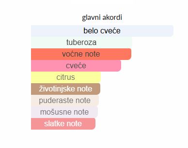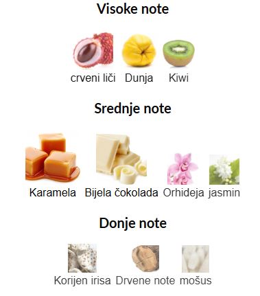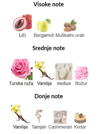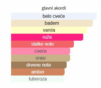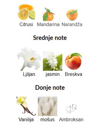 • Gornje note: Indijska tuberoza, Osmantus, Breskva, Bergamot